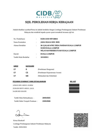 “Since the establishment of Jana Niaga Sdn. Bhd. in 1998, our vision has always been to deliver quality, reliability, and professionalism in every project we undertake. Over the years, we have grown from strength to strength, building a reputation in construction, facilities maintenance, and telecommunications through dedication and trust.